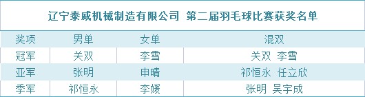 為了豐富員工的文體生活,培養(yǎng)員工的團(tuán)隊(duì)精神,增強(qiáng)員工的凝聚力,促進(jìn)員工之間的友誼,營(yíng)造一個(gè)自信、陽(yáng)光、充滿朝氣的企業(yè)氛圍,在鐵嶺市開發(fā)區(qū)總工會(huì)的支持下,遼寧泰威機(jī)械制造有限公司于2022年4月24日在開發(fā)區(qū)工人文化宮開展了第二屆羽毛球比賽,本次比賽以“文明、友誼、拼搏”為宗旨,秉承著勇攀高峰的精神和參與第一、友誼第一的比賽風(fēng)尚,充分展示著拼搏進(jìn)取的精神風(fēng)貌。